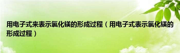 关于用电子式来表示氯化镁的形成过程,用电子式表示氯化镁的形成过程这个很多人还不知道,今天菲菲来为大家解答以上的问题,现在让我们一起来看看吧!