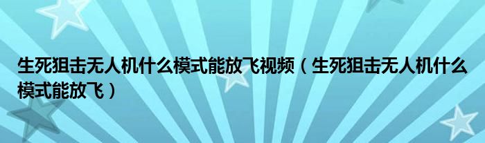 关于生死狙击无人机什么模式能放飞视频,生死狙击无人机什么模式能放飞这个很多人还不知道,今天菲菲来为大家解答以上的问题,现在让我们一起来看看吧!