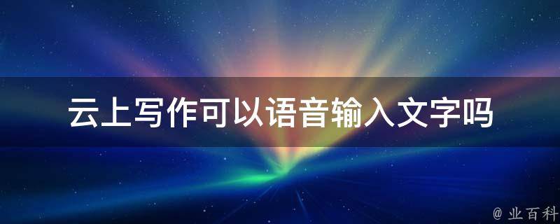 最佳答案云上写作可以语音输入文字,允许用户通过语音将其转化为文字。语音输入技术在许多写作应用中得到了广泛应用,它可以提高写作效率。通过语音输入,用户可以口述内容,然后系统将其转换成文字形式,减少了手动输入的时间和努力。
