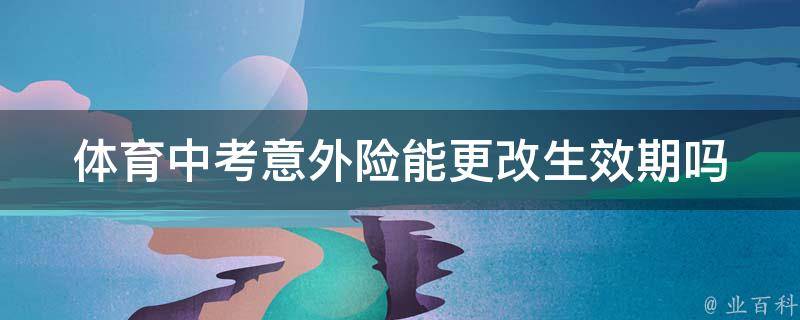 视情况而定。体育中考意外险的生效期一般由保险公司在保险合同中指定。通常情况下,一旦保险合同生效,保险的生效期是固定的,并且在合同期限内无法更改。如果希望更改体育中考意外险的生效期限,建议直接与保险公司联系并咨询他们的政策和规定。保险公司可以告知是否可以进行生效期的变更,以及是否会涉及任何额外费用或手续。