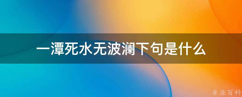 一潭死水无波澜下句是一叶扁舟独向前。这句诗出自唐代诗人杜甫的《秋夜将晓出篱门迎凉有感》,整首诗描述了诗人在秋夜中感叹社会动荡和自身困境的心情。一潭死水无波澜形象地描绘了一潭停滞无动的死水,这里比喻社会的沉寂和僵化;而一叶扁舟独向前指的是诗人自己,像一片独自划着小船向前行进的落叶,表达了诗人追求进取、积极向前的态度。