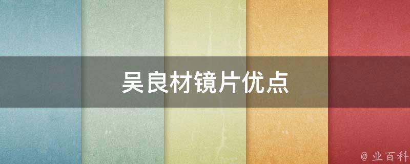 1、轻薄透明:吴良材镜片采用高质量的材料制造,因此非常轻薄,不会给佩戴者带来过多的负担。同时,它具有良好的透明度,可以提供清晰的视觉效果。