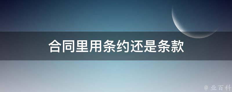 合同里用条款,因为条款是合同中的具体条目、规定或陈述,用于明确各方的权利、义务和责任。合同的各种细节和条件通常以条款的形式列出,以确保各方对于交易的理解一致。而条约是国际公约或国家间的正式协议,用于规范国与国之间的关系或解决特定的问题。条约通常引用在国际法、外交关系和政府间协议中,而不是常见的商业合同中。