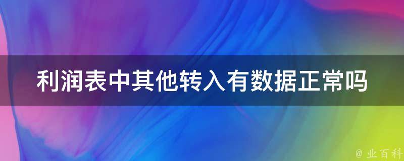 利润表中其他转入有数据正常,不同公司或组织在其利润表中可以有不同的其他转入项目。这些项目可以是非经常性收入的确认、资产处置的收益、法律和合规事项的调整、异常盈余等。其他转入的目的是确保将不适合或无法明确归类到其他特定类别中的收入或费用反映在利润表中,以提供一个全面的财务概览。