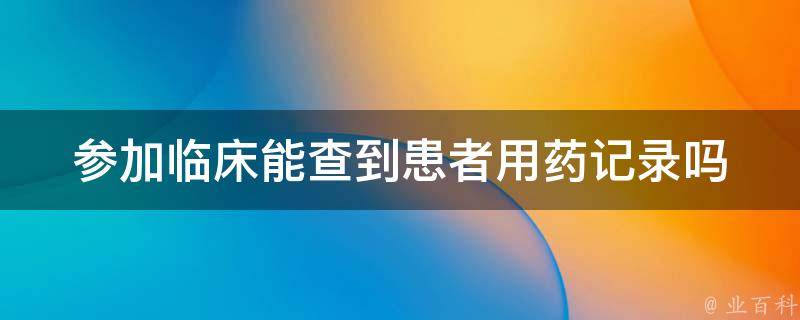 参加临床能查到患者用药记录,这是为了确保医疗团队能够了解患者的病史、过去的药物治疗以及目前正在使用的药物情况,以便进行全面的评估和治疗。通常,医院和医疗机构都会建立电子病历系统,其中包含患者的病历信息,包括诊断、用药记录和其他医疗信息。临床参与者可以通过访问电子病历系统或与医疗团队沟通来获取患者的用药记录。