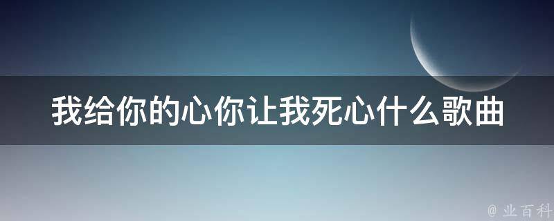 我给你的心你让我死心是歌曲《悲伤的爱情》。《悲伤的爱情》是任夏演唱的歌曲,发行于2023年6月13日,收录于同名专辑《悲伤的爱情》中。歌词节选:我给你的心,你让我死心,所以到底什么才是爱情。我深情专一,你逢场作戏,难道非要伤透才是爱情。