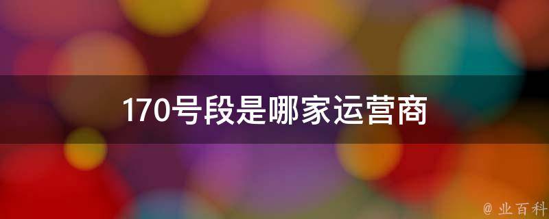 170号段是哪家运营商
