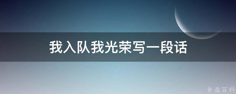 最佳答案我入队我光荣的一段话:当我踏入这支队伍的大门时,我心怀梦想、胸怀使命,怀揣着对责任和奉献的承诺。我将以无与伦比的热情投入到每个训练和任务中。无论是炎热的阳光还是严寒,我的决心都如钢铁般坚定,不屈不挠。我将不畏艰险、勇往直前,用自己的勤奋和努力谱写出队伍辉煌的新篇章。