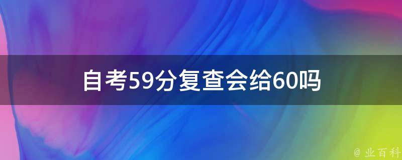 自考59分复查不会给60。报考自学考试比较严格,和高考一样,考生需要单科成绩达到60分即可申请毕业。考试计划中所有规定的考试科目都要达到60分及以上,其中也包括加考和选考的科目。自学考试并没有设置入学考试,自学考试单科考试满分100分,实施60分及格制,因此自考59分并不能算及格,所以该考生还得重新报考该课程考试。