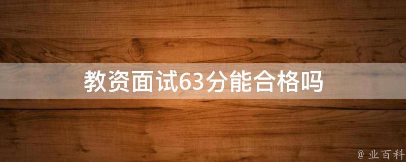 教资面试63分能合格。教师资格面试合格分通常是60分,但在教师资格证面试成绩报告单中,并不会显示分数,直接显示的是合格与不合格。面试合格后,会有相应的教师考试合格证明。