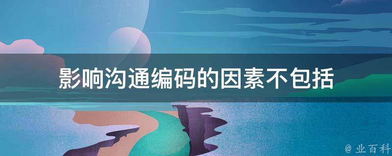 影响沟通编码的因素不包括经济背景,包括的因素有技巧、态度、知识。沟通双方用的代码越明确、越精准,沟通的效率就越高,比如电脑所用以编程的各种语言,代码都是标准化的,计算机可以准确解读执行。