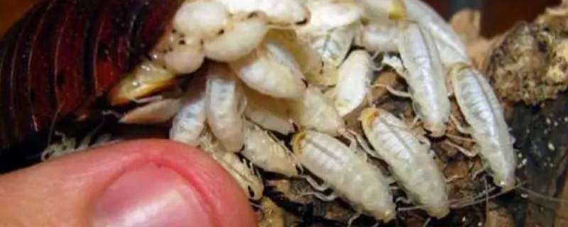 蟑螂卵呈窄长形、乳白色、半透明状,在卵鞘中排成整齐的两列,胚胎头向孔缝。孵化时,若虫向上顶,使闭合的卵鞘缝裂开而逸出。刚从卵鞘孵出的幼虫都聚集在卵鞘周围,呈白色,以后颜色逐渐变深,并散开活动。