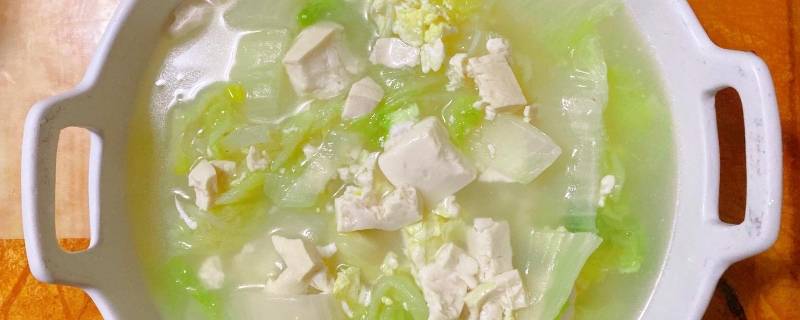2、白菜豆腐汤是中国的一道家常汤品。白菜豆腐汤主料是白菜和豆腐,主要烹饪工艺是煮,味道鲜美,而且含有丰富的蛋白质和维生素,口感独特,受到大众喜爱。