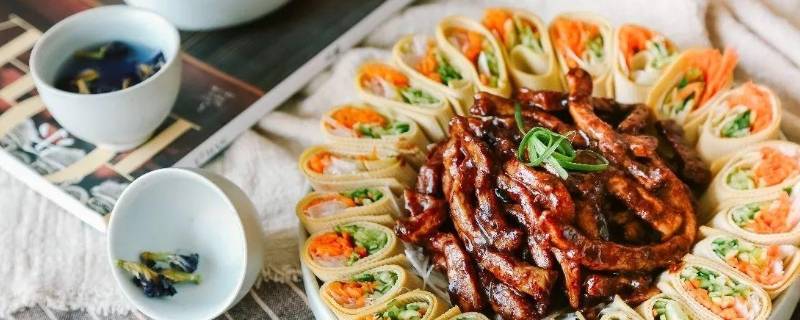 1、准备材料:猪里脊120克、蛋清1个、淀粉1勺、料酒1勺、盐少许、甜面酱1勺、黄豆酱1勺、生抽1勺、老抽2勺、胡萝卜半根、香菜适量、豆皮两张、生姜少许、香葱1根。