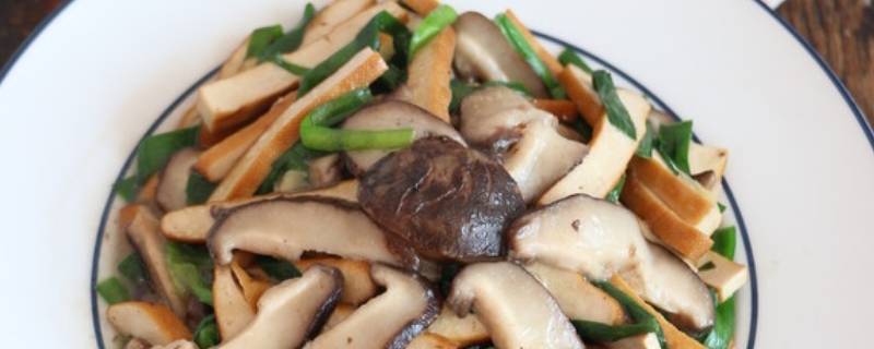 干香菇用热水泡发半个小时,豆干切成小块。