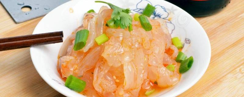 用料:海蜇头200克、盐2克、味极鲜酱油5克、醋适量、糖3克、葱花2克、芝麻油3克、花椒油2克、熟白芝麻3克。