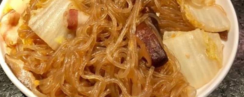 用料:大白菜半个、红薯粉150克、五花肉150克、姜蒜少许、生抽、老抽、蚝油。