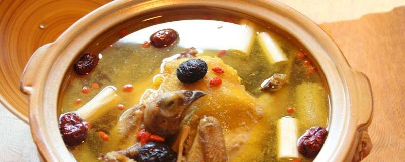 1、鸡肉切块,在沸水中煮1-2分钟捞出放在煲汤的砂锅中。