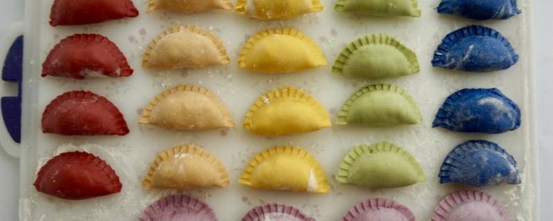 火龙果、紫甘蓝、胡萝卜、南瓜、菠菜、蝶豆花、普通面粉。七彩饺子是指饺子皮有多种颜色。在和面时,在面中分别加入不同颜色的色素,用这样的面做皮,包出的饺子放在一起,就具备了多种颜色。饺子的包法和普通饺子完全一样。