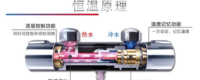 工作原理:在出水口处设有高灵敏记忆合金组件,记忆合金组件感温通过伸长和收缩改变冷热水流量达到流出所设定温度的水; 通过控制换热器、空调机组或其他用热、冷设备、一次热(冷)媒入口流量,以达到控制设备出口温度。当负荷产生变化时,通过改变阀门开启度调节流量,以消除负荷波动造成的影响,使温度恢复至设定值。
