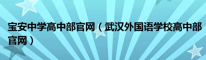 大家好,小联来为大家解答以上的问题。宝安中学高中部官网,武汉外国语学校高中部官网这个很多人还不知道,现在让我们一起来看看吧!