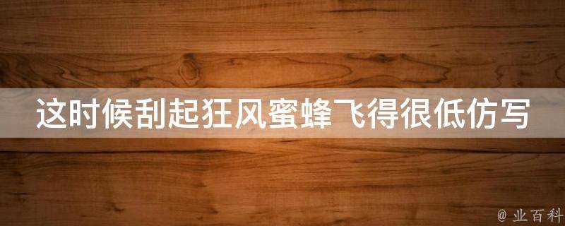 1、这时候刮起了狂风,燕子飞得很低,几乎要触到地面,可能这样可以减少阻力。
