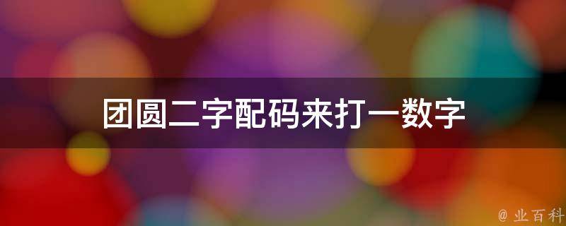 团圆二字配码来打一数字是8。团圆可以用数字0表示,0本来就是个圆,所以可以引申为团圆,二字配码则可理解为两个0环环相扣,所以团圆二字配码来打一数字是8。团圆是指一家人全部在一起,一年之中,家人去远方工作,只有到年的时候才回家团圆。