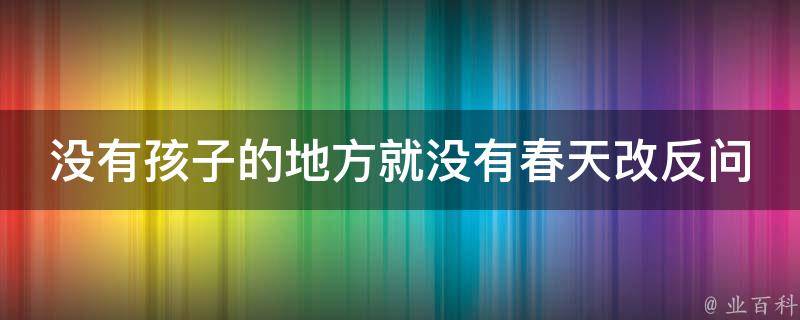 没有孩子的地方就没有春天改成反问句是:没有孩子的地方怎么会有春天?陈述句改反问句的方法是将肯定句中的肯定词(是、能、会等)改为否定词(不是、不能、不会等)。将否定句中的否定词(不是、不能、不会等)改为肯定词(是、能、会等)。在肯定词或否定词前面加上怎、怎么、难道、岂等反问语气词。句尾加上疑问助词呢、吗等,句末的句号改为问号。