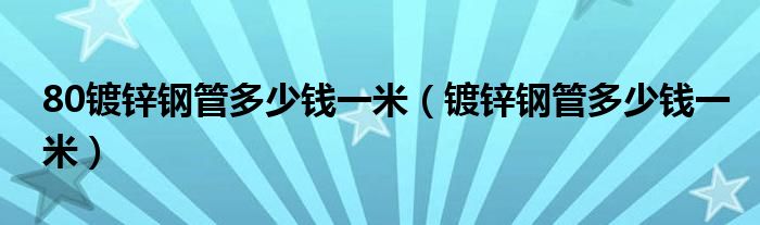 关于80镀锌钢管多少钱一米,镀锌钢管多少钱一米这个很多人还不知道,今天菲菲来为大家解答以上的问题,现在让我们一起来看看吧!