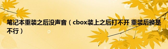 大家好,小联来为大家解答以上的问题。笔记本重装之后没声音,cbox装上之后打不开 重装后换是不行这个很多人还不知道,现在让我们一起来看看吧!