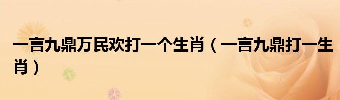 大家好,小联来为大家解答以上的问题。一言九鼎万民欢打一个生肖,一言九鼎打一生肖这个很多人还不知道,现在让我们一起来看看吧!