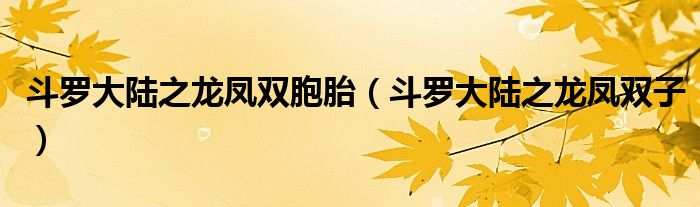 大家好,小联来为大家解答以上的问题。斗罗大陆之龙凤双胞胎,斗罗大陆之龙凤双子这个很多人还不知道,现在让我们一起来看看吧!
