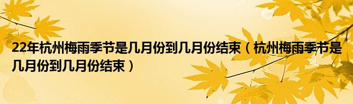 大家好,小夏来为大家讲解下。22年杭州梅雨季节是几月份到几月份结束,杭州梅雨季节是几月份到几月份结束很多人还不知道,现在让我们一起来看看吧!