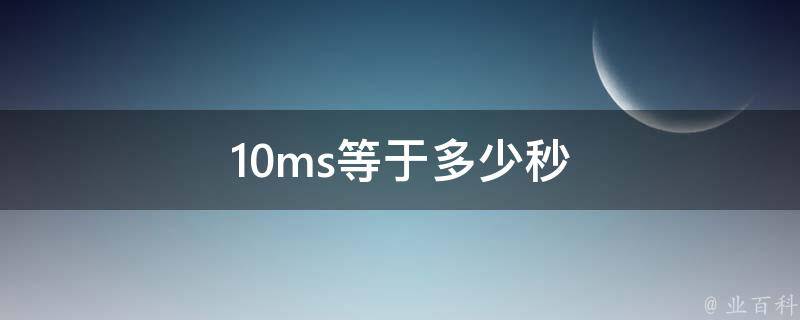 10ms等于0.01秒。毫秒是一种较为微小的时间单位,符号为ms,1秒=1000毫秒;1毫秒=1000微秒;1微秒=1000纳秒;1纳秒=1000皮秒。秒是国际单位制中时间的基本单位。