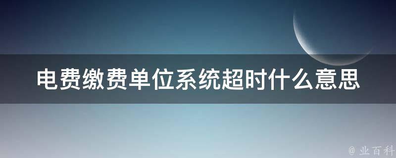 电费缴费单位系统超时是指在缴纳电费时,由于电力高峰期或电力负荷过大,导致系统超载,从而出现延迟问题的意思。当遇到这种情况时,建议稍后再次尝试缴纳电费,或者联系电力公司客服咨询具体情况。
