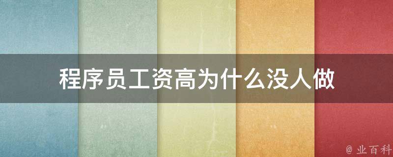 最佳答案1、加班多:程序员的工资的确很高,但大多都是加班换来的,程序员可以算是加班最多的人群了,甚至有时候回到家里,深夜也要拿起电脑敲码。2、竞争大:IT行业越来越火,许多年轻人也都纷纷投入这个行业,竞争很大,如果一个老程序员一直没有升职,往往会选择转行。3、压力大:程序员的压力是很大的,...