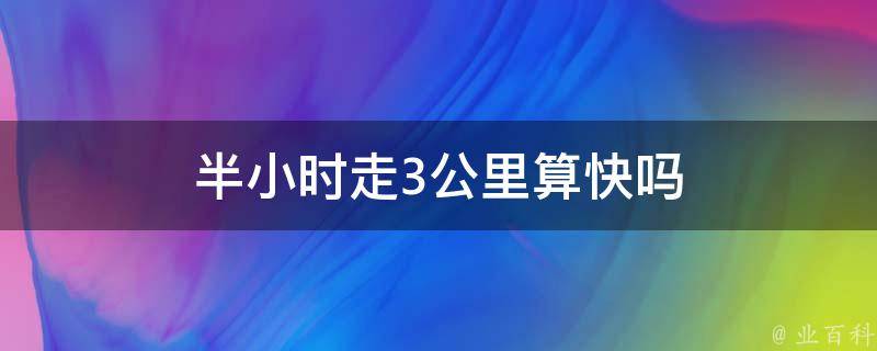 半小时走3公里算快。在一般情况下,正常人的行走速度大约是每秒0.5米左右,半小时走3公里左右,相当于每小时走6公里左右。这个速度对于大多数人来说都是比较快的,特别是对于那些平时不经常锻炼的人来说。
