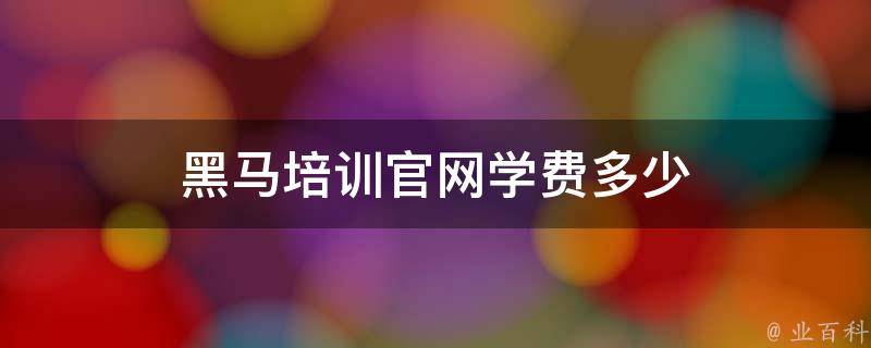 黑马培训官网学费多少
