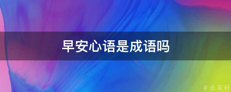 最佳答案早安心语不是成语。早安心语是词语,指的是在每天早晨对自己或他人说出一些鼓励、祝福、感恩、感悟等积极向上的话语,让人们在开始新的一天时保持良好的心态和情绪。成语是汉语中经过长期使用、锤炼而形成的固定短语,它是比词的含义更丰富而语法功能又相当于词的语言单位,而且富有深刻的思想内涵...