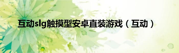 大家好,我是小科,我来为大家解答以上问题。互动slg触摸型安卓直装游戏,互动很多人还不知道,现在让我们一起来看看吧!