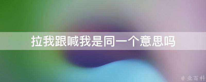 拉我跟喊我不是同一个意思。拉我通常指的是用手或肢体接触的方式引导或拉动某个人,这可能是为了引起某人的注意或者帮助移动。而喊我则是指通过声音来呼唤或召唤某个人。虽然这两个短语都涉及到与他人的互动,但具体含义有所不同。
