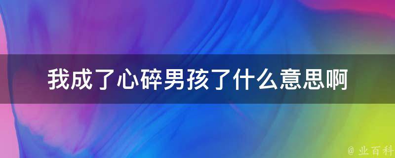 我成了心碎男孩了的意思是一个男性在感情方面遭受了伤害或失望,导致他的心情沮丧、痛苦或悲伤。这种表达形象地描述了他的内心状态,暗示他的心碎和受伤情绪,可能需要时间来愈合和恢复。这个短语通常用来描述某个具体时刻或特定情况下的情感状态,而不是一个人的持久特征。