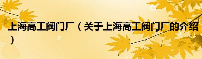 大家好,小夏来为大家解答以上的问题。上海高工阀门厂,关于上海高工阀门厂的介绍很多人还不知道,现在让我们一起来看看吧!