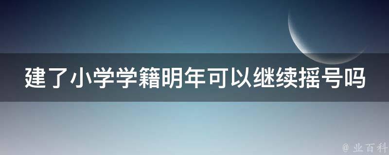 建了小学学籍明年不可以继续摇号。小学一年级学生无法参加第二年的摇号,摇号通常是针对升学问题进行的,小学一年级学生应该继续在小学学习,而不是参加摇号。学籍是指一个学生属于某学校的一种法律上的身份或者资格,学校登记学生的信息,专指作为某校学生的资格。