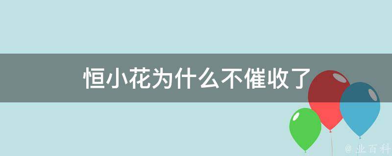 恒小花不催收的原因可能是公司内部出现问题,导致催收部门无法正常运作;公司调整催收策略,寻找更加合适的方式来催收;催收方没有正确的联系方式,或者用户联系方式发生了变化,导致催收方无法与对方取得联系。