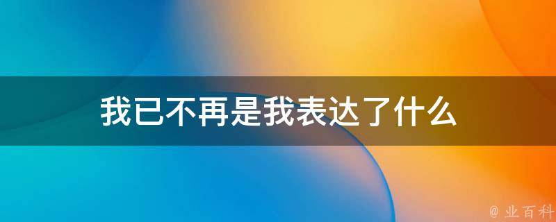 我已不再是我表达了一个人在经历了一些重大变化后,自我认知和个性发生了剧烈变化,与之前的自己有了极大的不同。这句话是一种哲学上的思考,表达了个体在时间、空间、自我认知等方面的流动性和相对性。在这种理解下,意味着每个人都是一个不断变化的存在,没有一个固定不变的我,而是在不断地经历着各种变化和转变。