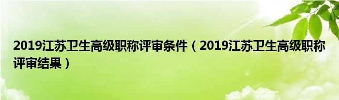 2019江苏卫生高级职称评审条件(2019江苏卫生高级职称评审结果)