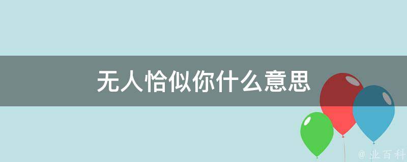 无人恰似你的意思是在所有人中,没有人能够与你相比,你是独一无二的,无人能够媲美你。这句话通常用来表达对某人的特殊才能、品质或魅力的赞美,强调他们的独特性和与众不同之处。它可以用于表达对亲人、朋友、爱人或其他特别的人的赞美和爱意。