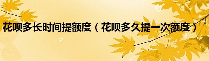 提额时间大约是在3个月左右,有可能更短。花呗属于蚂蚁金服旗下的“消费金融”产品,本身属于个人信百用贷范畴,所以额度提升的依据跟银行信用卡差不多。时间的话,大多数银行的提额审查期为3~6个月,花呗据说是不定期提额,但从实际操作角度,提额审查的时间并不是不定期。