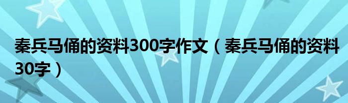 大家好,我是小科,我来为大家解答以上问题。秦兵马俑的资料300字作文,秦兵马俑的资料30字很多人还不知道,现在让我们一起来看看吧!
